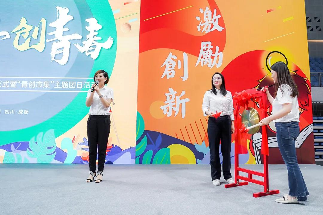 公司黨委副書記、董事、工會主席李春梅宣布“青創大賽”暨“青創市集”正式啟動,集團團委干事彭敏以及公司團委副書記唐娟共同敲響創新之聲。