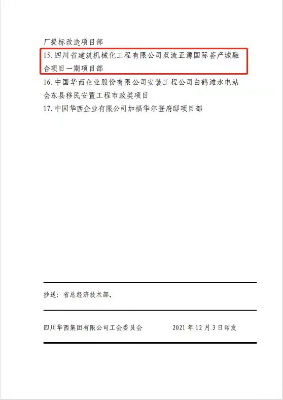 近日,集團傳來喜訊,經過評比驗收,集團工會決定授予四川機司東來印象項目部(簡陽市文化體育中心)“工人先鋒號”金獎、五星“模范職工小家”稱號;授予麓湖生態城C15項目部“工人先鋒號”銀獎、四星“模范職工小家”稱號;授予雙流正源國際薈產城融合項目一期項目部“工人先鋒號”銅獎、三星“模范職工小家”稱號。