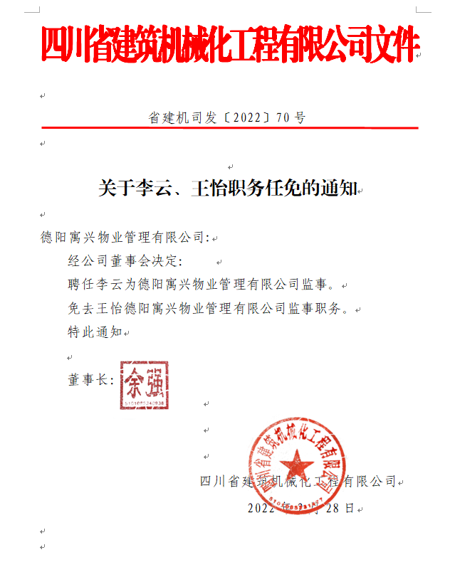 關于李云、王怡職務任免的通知