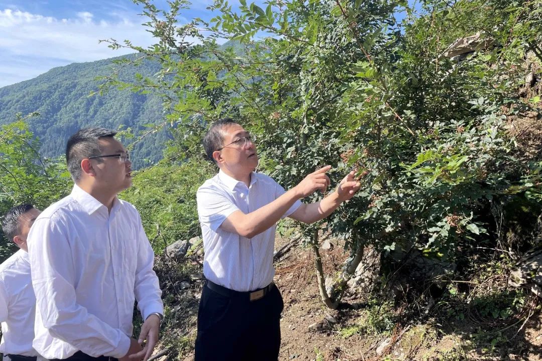武勇實地查看了花椒的生長情況,詳細了解了當前花椒生產、采摘、銷售及精深加工方面的情況及存在困難,就花椒基地未來的規劃進行了交流,對進一步發揮好花椒產業的經濟效益、生態效益和社會效益提出了意見建議。