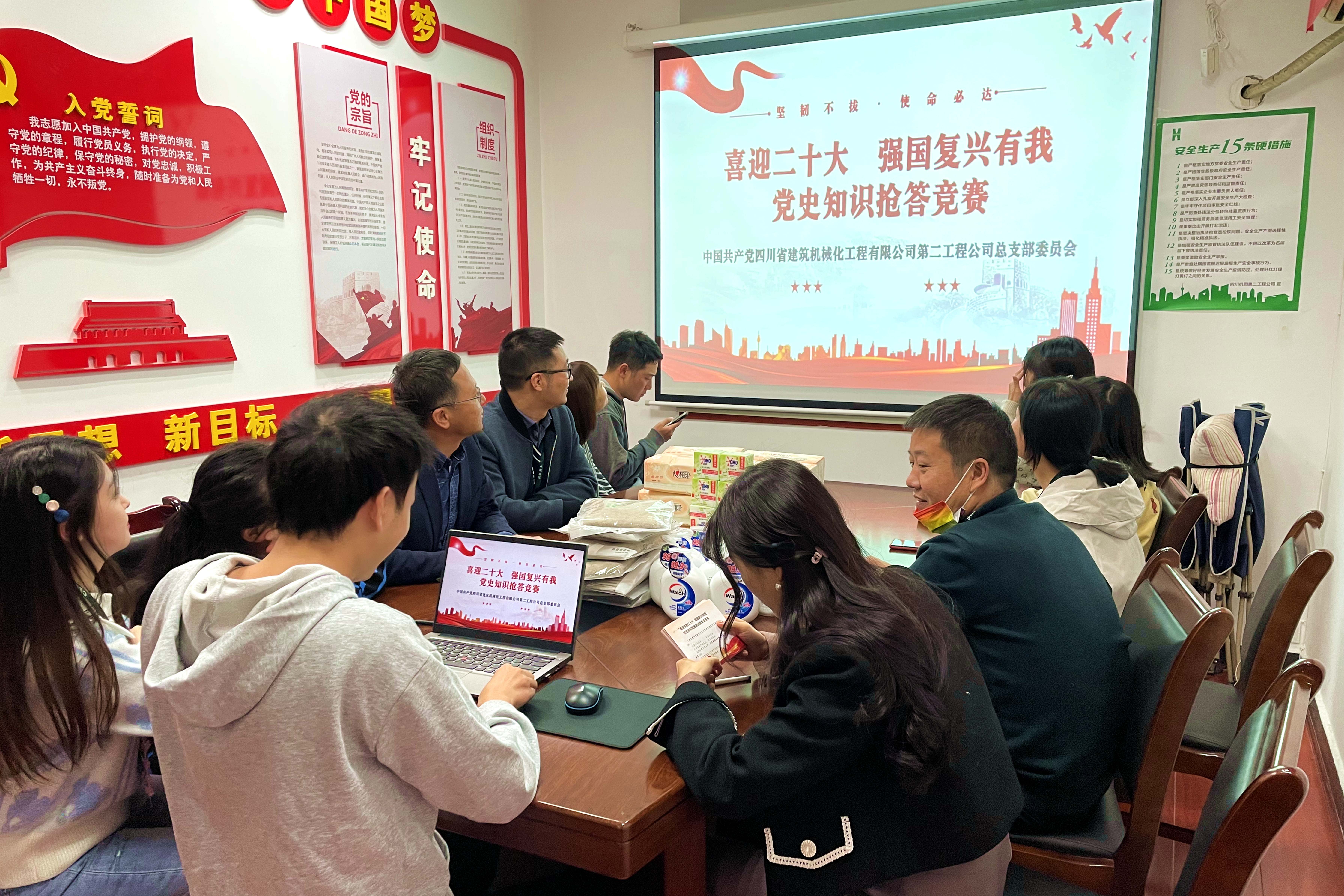 為迎接黨的二十大勝利召開(kāi),推動(dòng)黨史學(xué)習(xí)教育常態(tài)化。10月10日,四川機(jī)司第二工程公司開(kāi)展“喜迎二十大 強(qiáng)國(guó)復(fù)興有我”黨史知識(shí)競(jìng)賽。二公司黨政領(lǐng)導(dǎo)現(xiàn)場(chǎng)觀賽并為獲獎(jiǎng)選手頒獎(jiǎng)。來(lái)自二公司各部門(mén)共四支代表隊(duì)參賽。